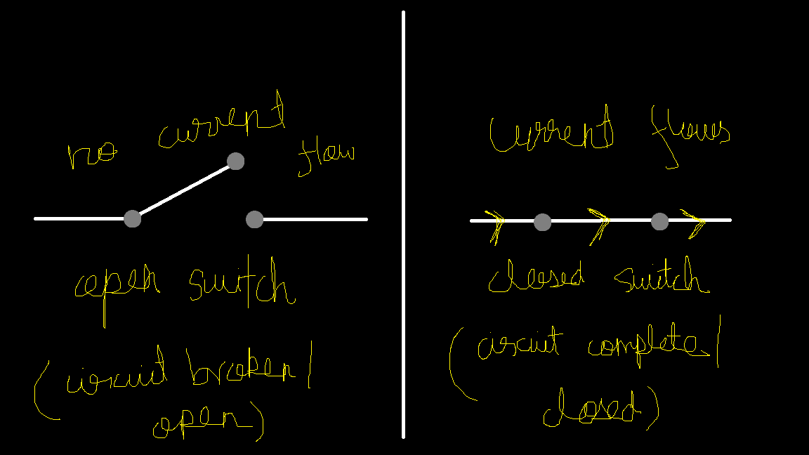 Also we a component called switch, which is exacly what its name suggest. Its turns ON/OFF the circuit by Closing(Completing)/Opening(Breaking) the circuit. Now tell what’s current in the circuit in the cover picture:)