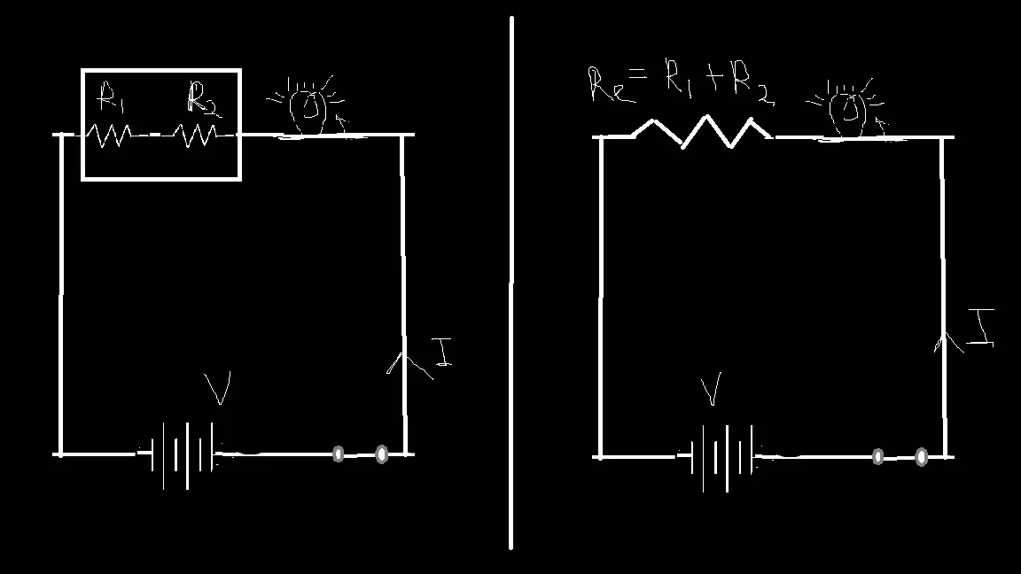 $$R_{Equivalent}=R_{1}+R_{2}$$
