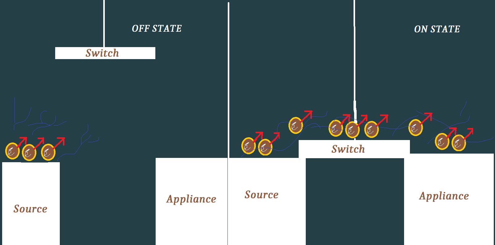 That’s why you don’t get shocked when you press a switch with your bare, innocent fingers.