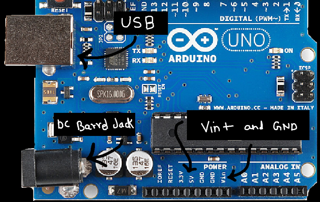The Uno can be powered in three ways: