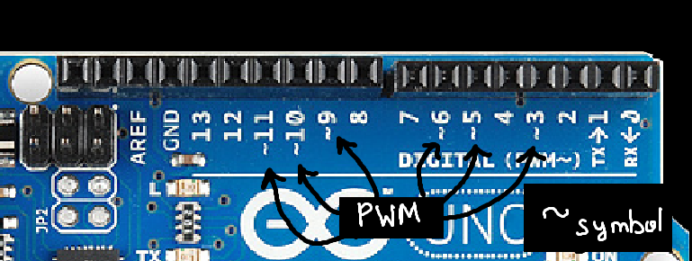 Pins 3, 5, 6, 9, 10, 11 → support PWM (~analog output)